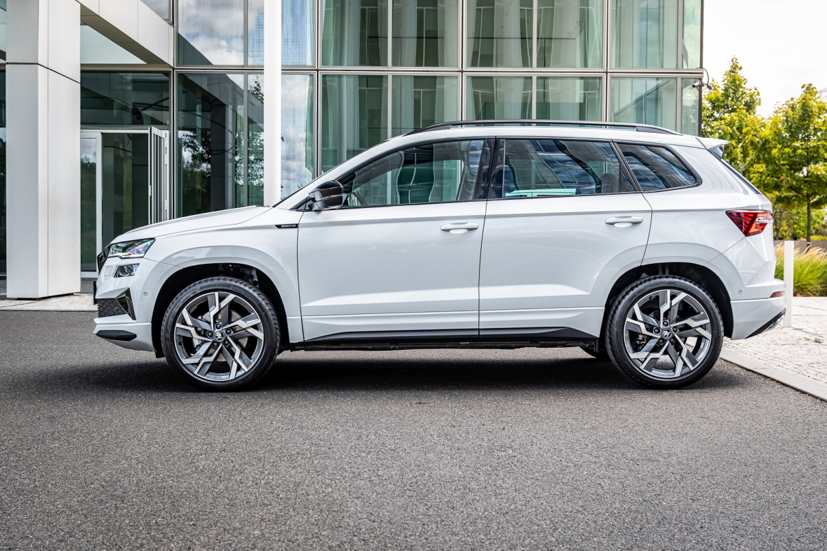 Pokud chcete větší výkon a stejnou velikost, doporučujeme Škoda Karoq Sportline 4x4 – ideální volbu pro dynamickou jízdu a jistotu na všech typech silnic.