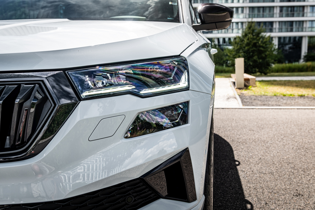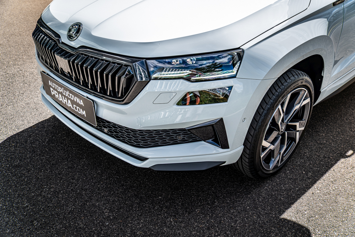Karoq Sportline nabízí mimo jiné LED světlomety, digitální přístrojový štít, moderní infotainment s konektivitou, parkovací senzory, asistenční systémy a multifunkční volant, které přispívají k bezpečnější a komfortnější jízdě.