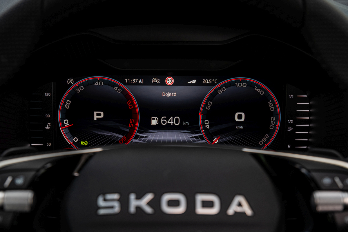 Na výbavě našich vozů rozhodně nešetříme! Víme, že naši klienti očekávají pohodlí a moderní technologie, a proto jsme do Škody Karoq přidali i příplatkový virtuální kokpit. Díky němu máte všechny klíčové informace na dosah – stylově a přehledně.